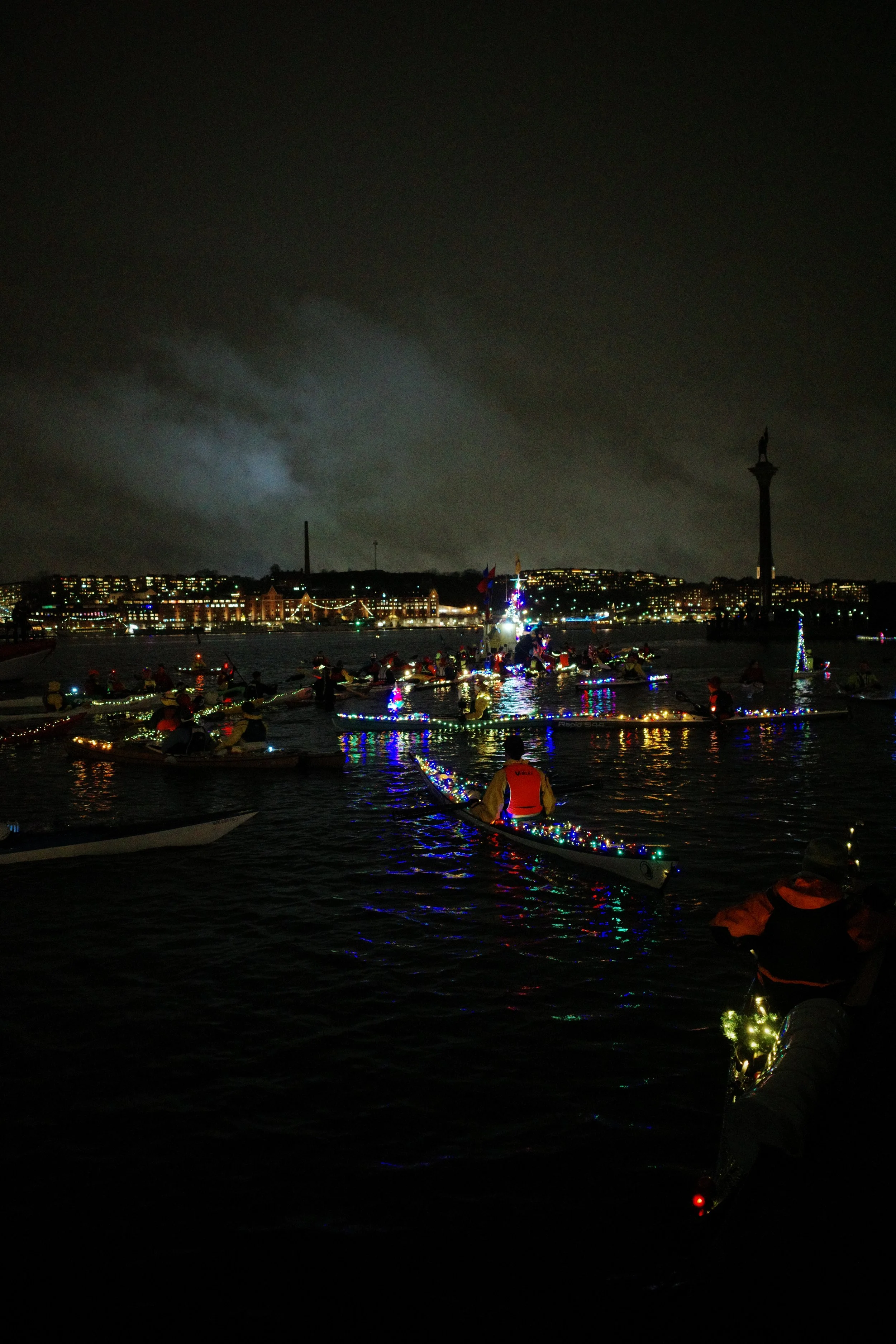 The next day we walked through the old town, visited the Julmarknad (Christmas markets) and saw an incredible light show through different parts of the city, which were on for St Lucia day! One of the celebrations was a procession of kayakers covered in fairy lights paddling along the water, one person in a creek boat was doing some flips, no gloves or pogies to be seen, these Swedes are tough! -6c air temp and water had some ice floating in it, would have been freezing!