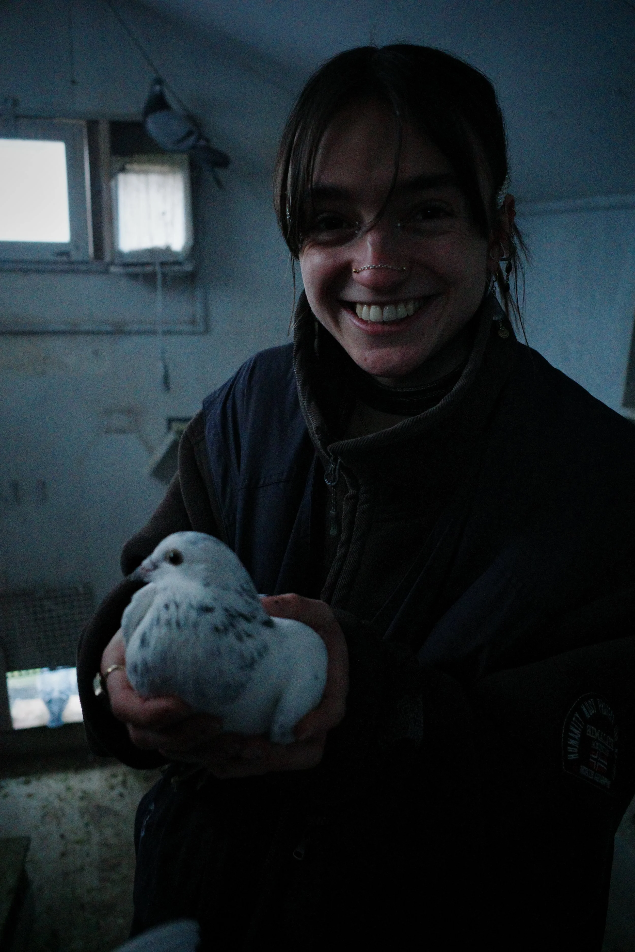 Julie, Lil and I were very excited to see what a Swedish Christmas looked like. We were welcomed in and got to meet the family. Name cards made out of gingerbread were spread around the table, this was very sweet to see. We went outside and got to meet the family chickens and more importantly the racing pigeons. Osmonds dad, Davide breeds and races these pigeons and was very excited to show us. Julie who was very excited even got to hold one!