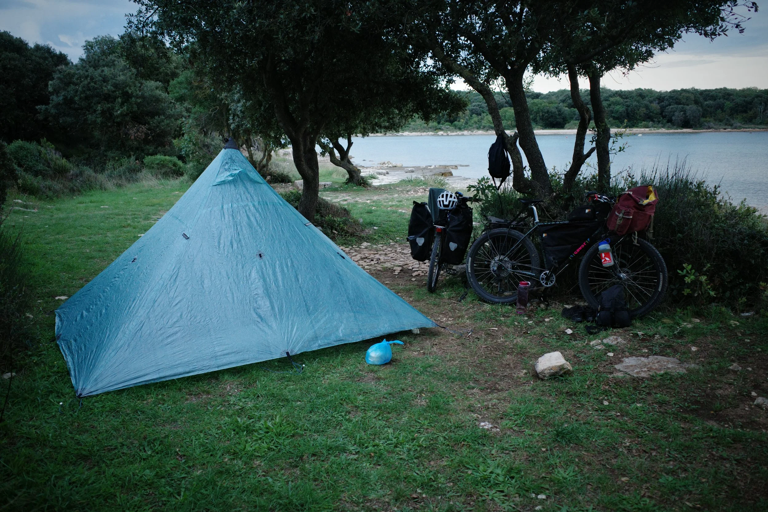 Jokes aside we set off and enjoyed being on generally bike friendly roads and paths as we meandered up the Istrian Coast. Cooking dinner next to the calm and clear waters of the Mediterranean was very special.