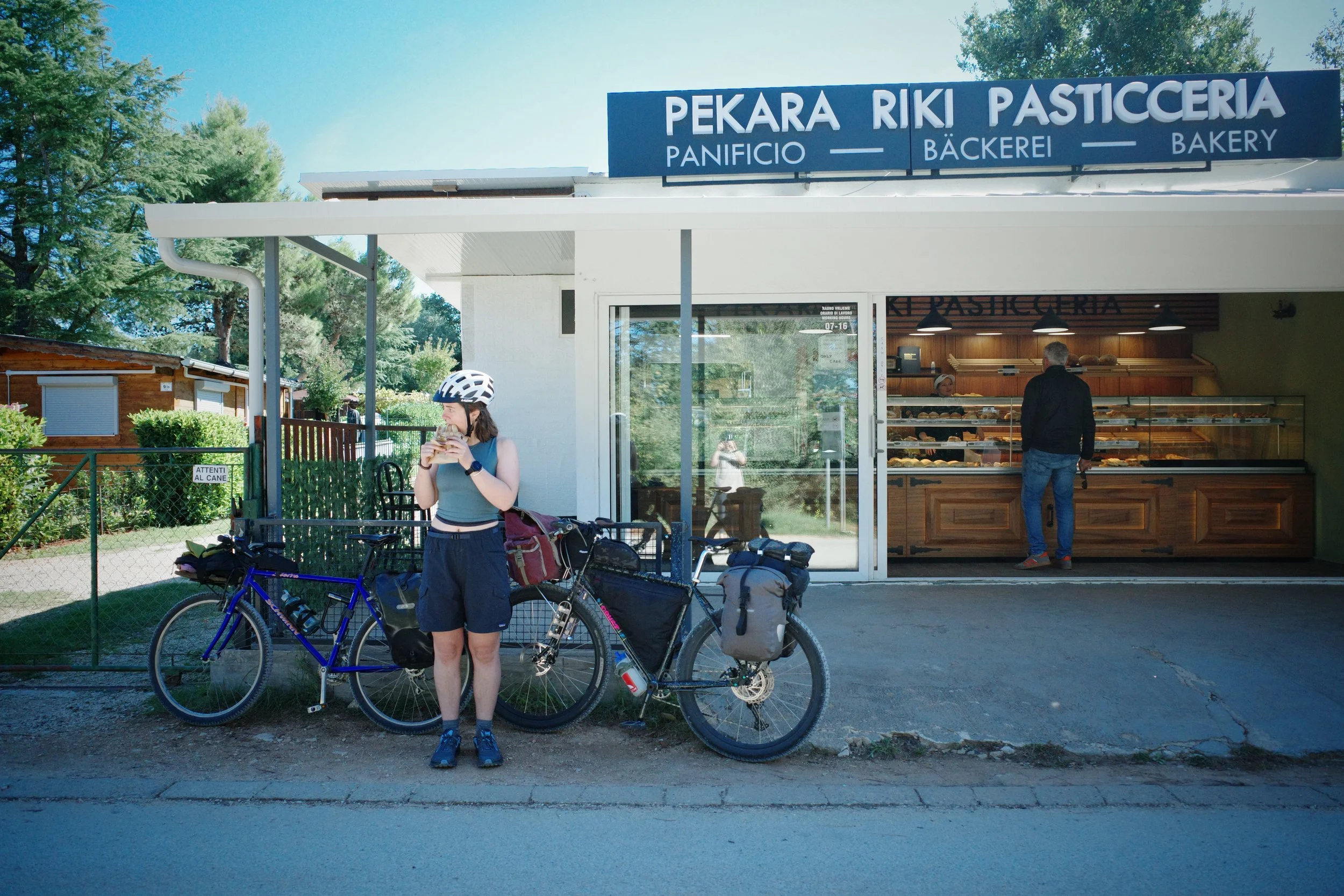 It was nice to have a few days off the bike to let our legs recover and wine & dine like we were on a fancy holiday. Trieste has some beautiful old buildings and lots of espresso bars which we made sure to check out. Lil was on the hunt for some Italian leather boots and Marlee enjoyed trying on a different style of boot (Italy is home to La Sportiva), he even got offered a job at one of the local outdoor stores, Ha!