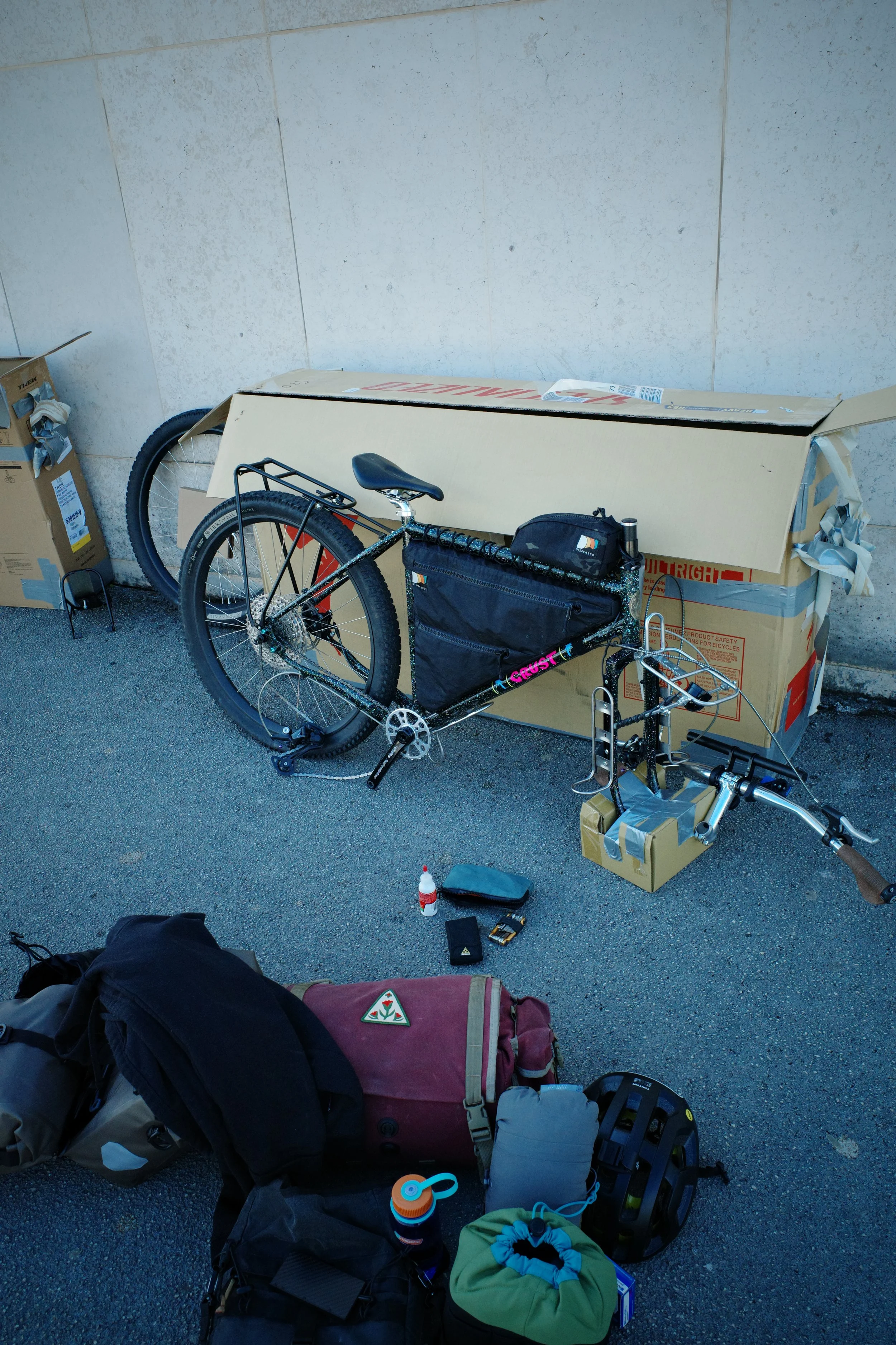 We were both grinning as we stepped off the plane into the hot and salty Croatian coastal air, it was a nice change after a bumpy start to the day with a very early wake up for our budget flight. We found our bike boxes both in one piece and got the usual funny looks as we built our bikes out the front of the terminal.